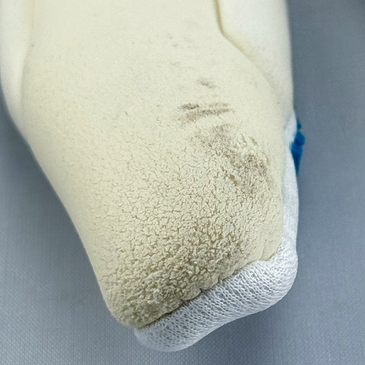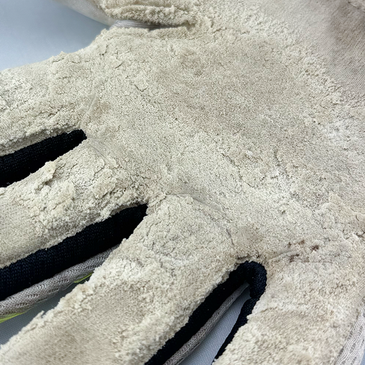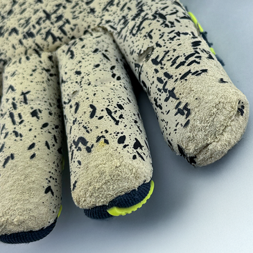 Latex is a natural product and wears down with every touch of the ball—whether on grass, artificial turf, or through contact with Velcro. Visible abrasion can occur after just a few uses and is not a defect, but rather the result of the excellent grip properties. If you choose maximum grip, you have to accept faster wear and tear on the material.